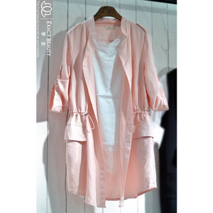 5E13新款歐洲站實拍春夏裝東大門女棉麻風(fēng)衣收腰抽繩韓版潮 /