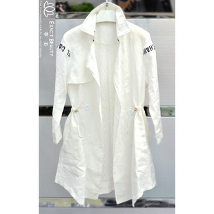 5E49新款15春夏裝歐洲站東大門女棉麻風(fēng)衣抽繩潮爆外披雙排扣 /