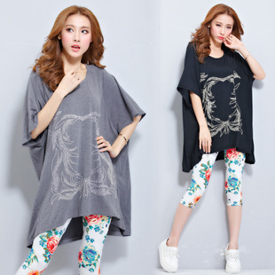 阿里巴巴庫存網(wǎng)胖m款特大加大碼女裝 中長款實拍韓版寬松短袖t恤 /