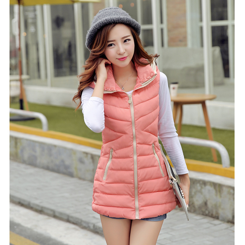實拍2015秋冬新款韓版時尚修身連帽馬甲中長款羽絨服女棉衣。 /