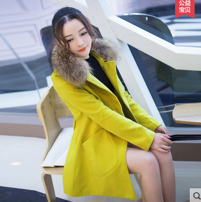 2015秋冬新款毛呢外套韓版中長款女裝大毛領外套尼子大衣 /