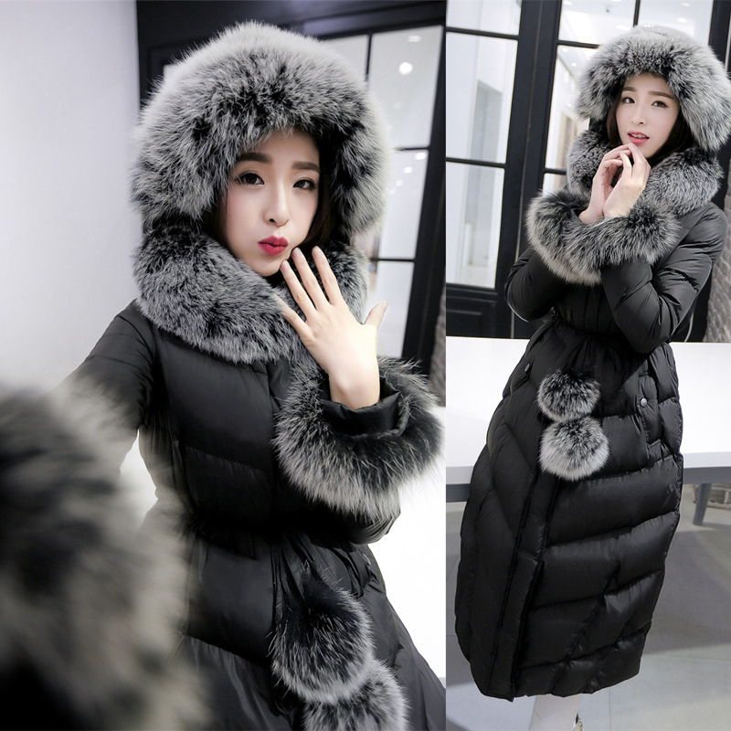 2015冬裝新品羽絨服長款過膝狐貍大毛領(lǐng)連帽抽繩加厚保暖外套女裝 /