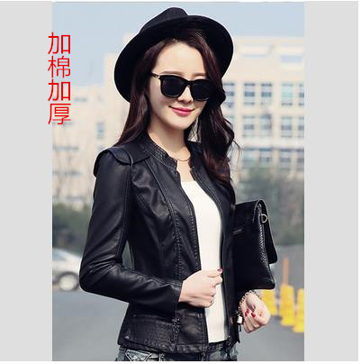 加棉新款機(jī)車小皮衣女春秋裝短款修身Pu夾克韓版西裝外套 /