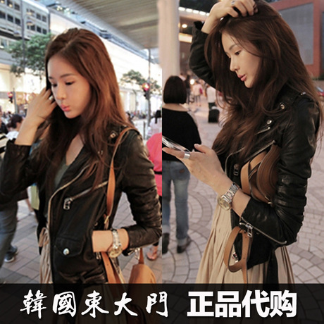 2015新款秋裝韓版二層真皮衣女短款修身機(jī)車翻領(lǐng)夾克小外套 /