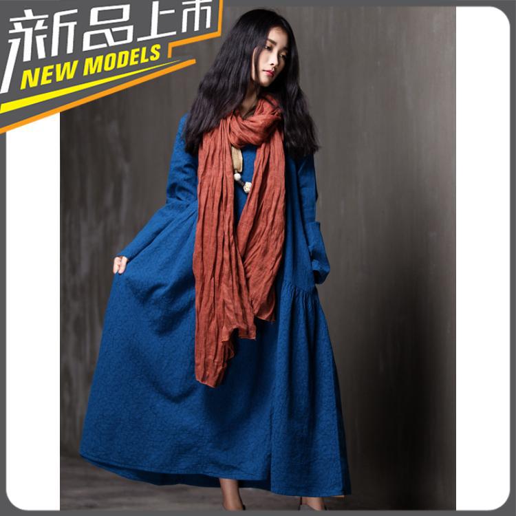 2015秋季棉麻新品 氣質(zhì)顯瘦百搭文藝田園打底衫 長款女連衣裙 /