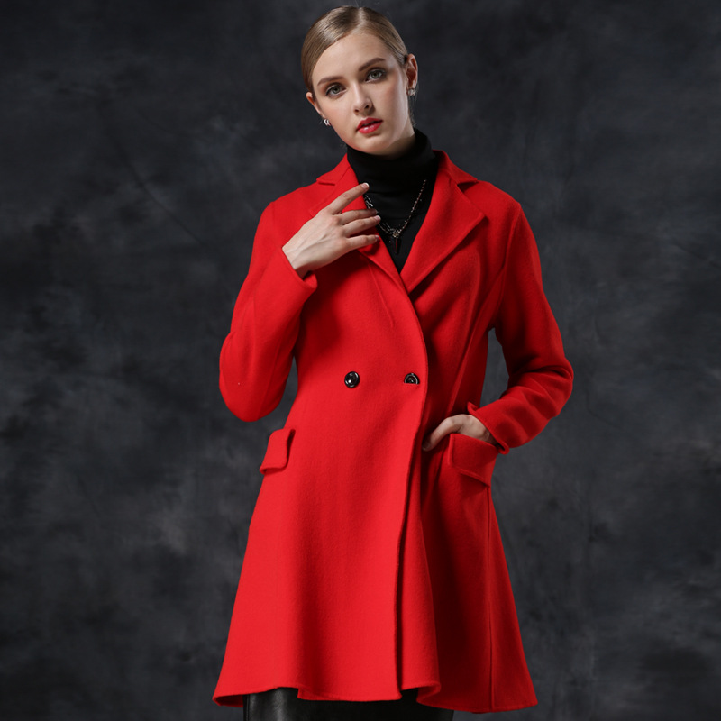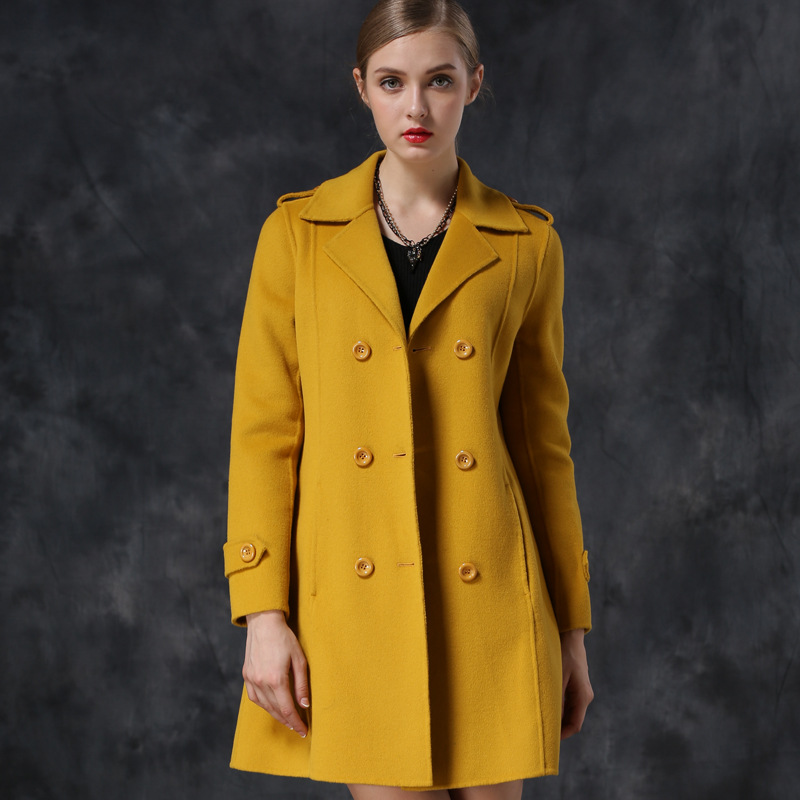 2015冬季新款羊絨大衣韓版雙排扣手工雙面毛呢大衣女式風(fēng)衣外套 /