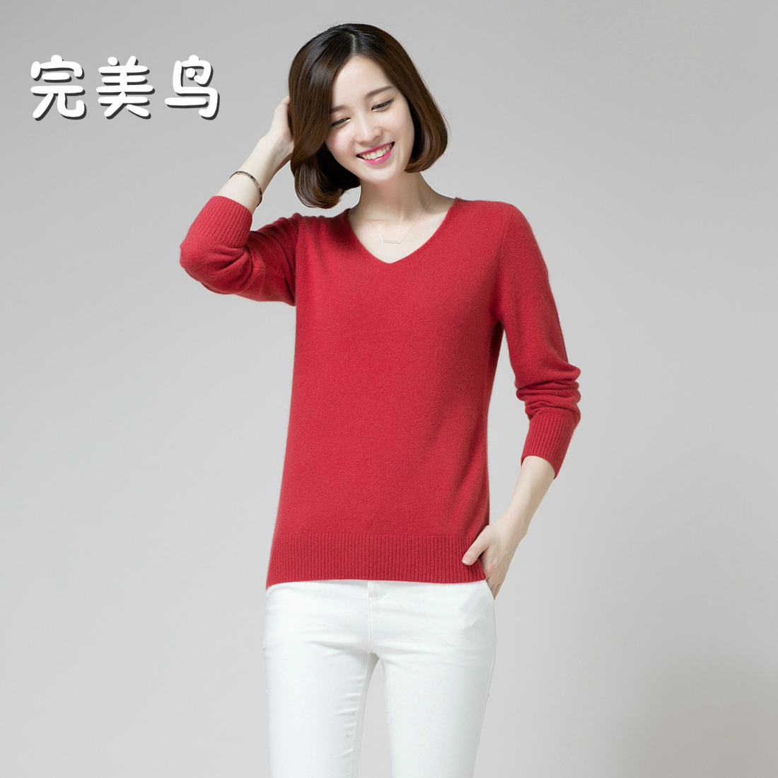 完美鳥2015新款甜美女式毛衣圓領套頭修身打底衫貂絨衫純羊絨毛衣 /