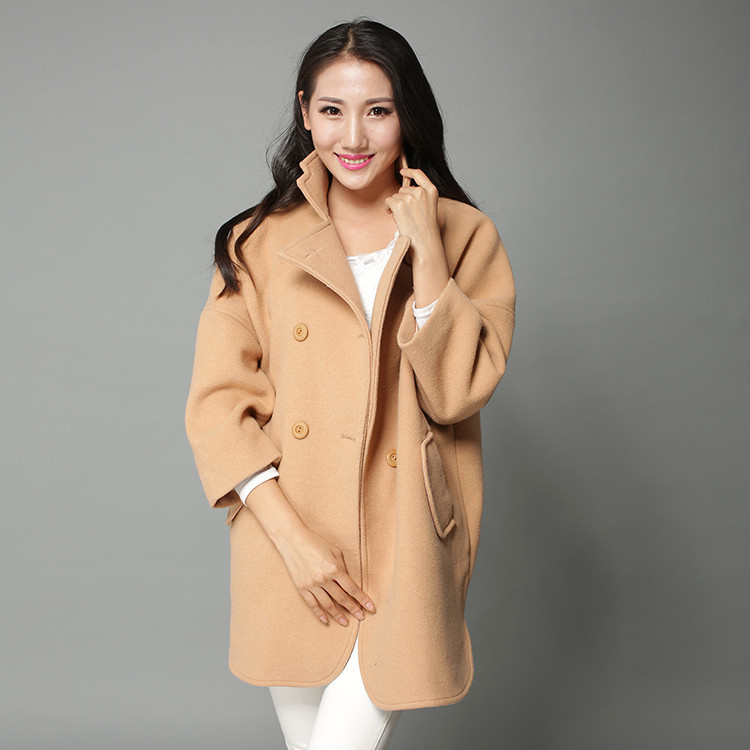 簡介: 貨號FL8153# 產(chǎn)地哈爾濱 主圖來源實(shí)拍有模特 產(chǎn)品類別大衣 貨源類別現(xiàn)貨 是否庫存是 庫存類型整單 面料名稱雙面絨 主面料成分羊毛 主面料成分的含量87(%) 圖案純色 風(fēng)格韓版 厚薄普通 版型蝙蝠型 衣長中長款(65cm<衣長≤80cm) 領(lǐng)型立領(lǐng) 袖長九分 衣門襟雙排扣 是否有腰帶無腰帶 上市年份/季節(jié)2015秋季