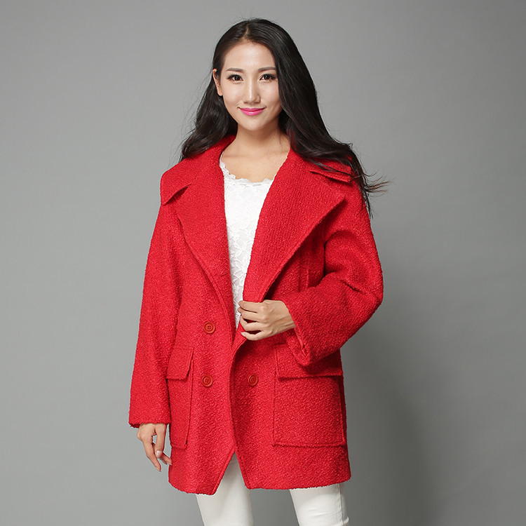 簡介: 貨號FL8158# 產(chǎn)地哈爾濱 主圖來源實(shí)拍有模特 產(chǎn)品類別大衣 貨源類別現(xiàn)貨 是否庫存是 庫存類型整單 面料名稱毛呢 主面料成分羊毛 主面料成分的含量45(%) 圖案純色 風(fēng)格韓版 厚薄普通 版型直筒型 衣長中長款(65cm<衣長≤80cm) 領(lǐng)型翻領(lǐng) 袖長長袖 衣門襟雙排扣 是否有腰帶無腰帶 上市年份/季節(jié)2015秋季