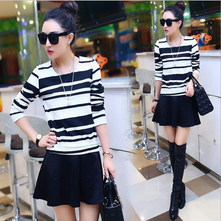 簡介: 貨源類別現(xiàn)貨 主圖來源實(shí)拍有模特 風(fēng)格韓版 圖案條紋 工藝拼貼/拼接 產(chǎn)地廣州 庫存類型整單 款式基本款 組合形式兩件套 裙長短裙 裙型A字裙 領(lǐng)型圓領(lǐng) 袖型常規(guī)袖 袖長長袖 腰型中腰 衣門襟套頭 流行元素拼接 上市年份/季節(jié)2015秋季 面料名稱棉 主面料成分棉