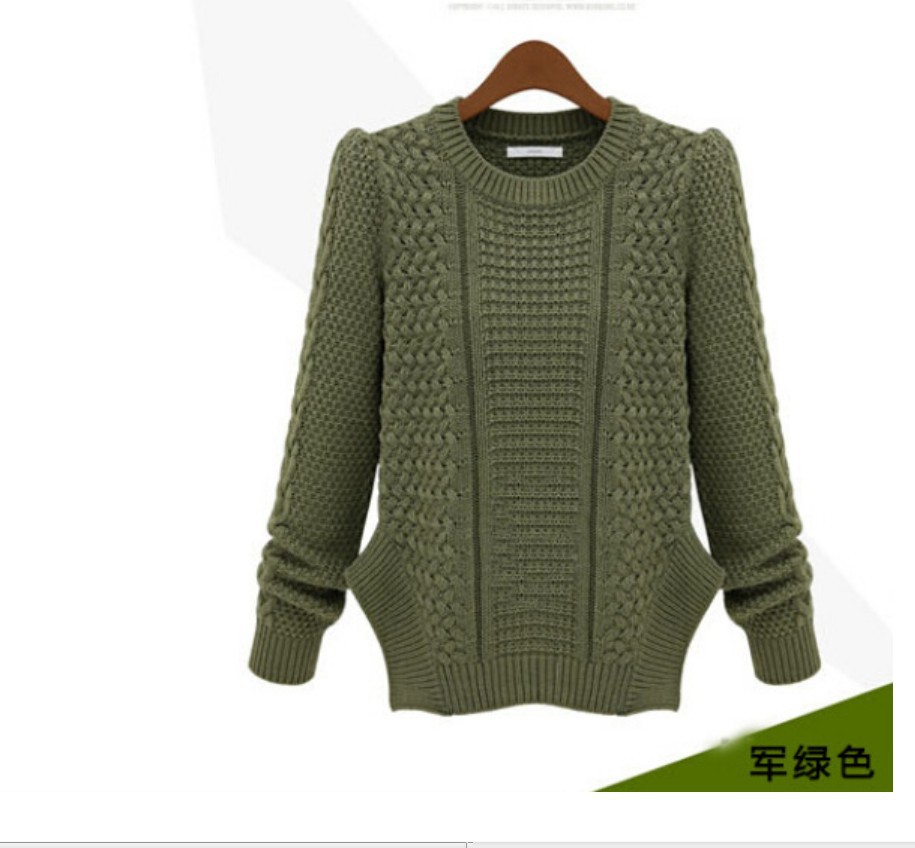 2015秋冬外貿(mào)新款麻花下擺開叉修身長袖針織衫毛衣 /