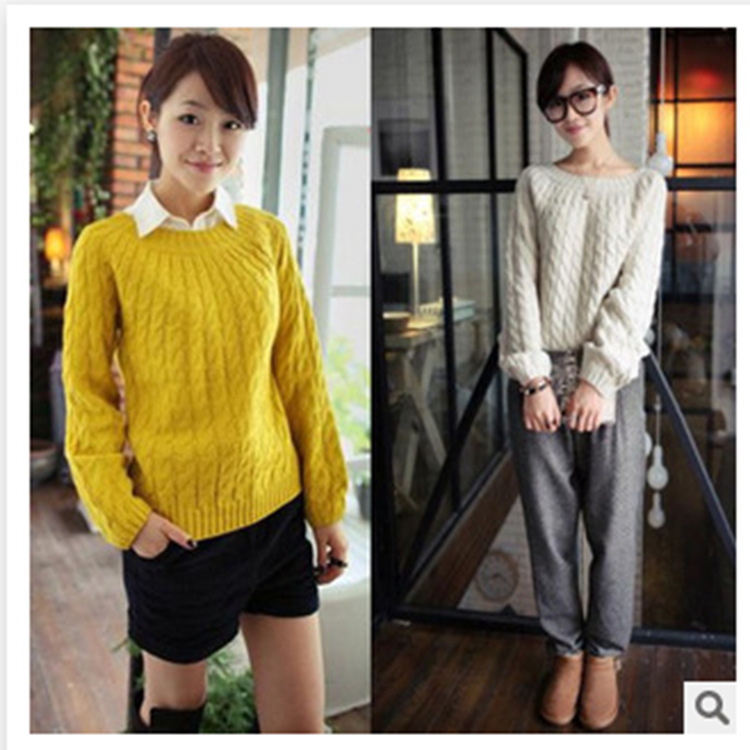 2015秋冬季毛衣新款韓版女裝套頭麻花純色針織衫女廠家直銷代發(fā) /