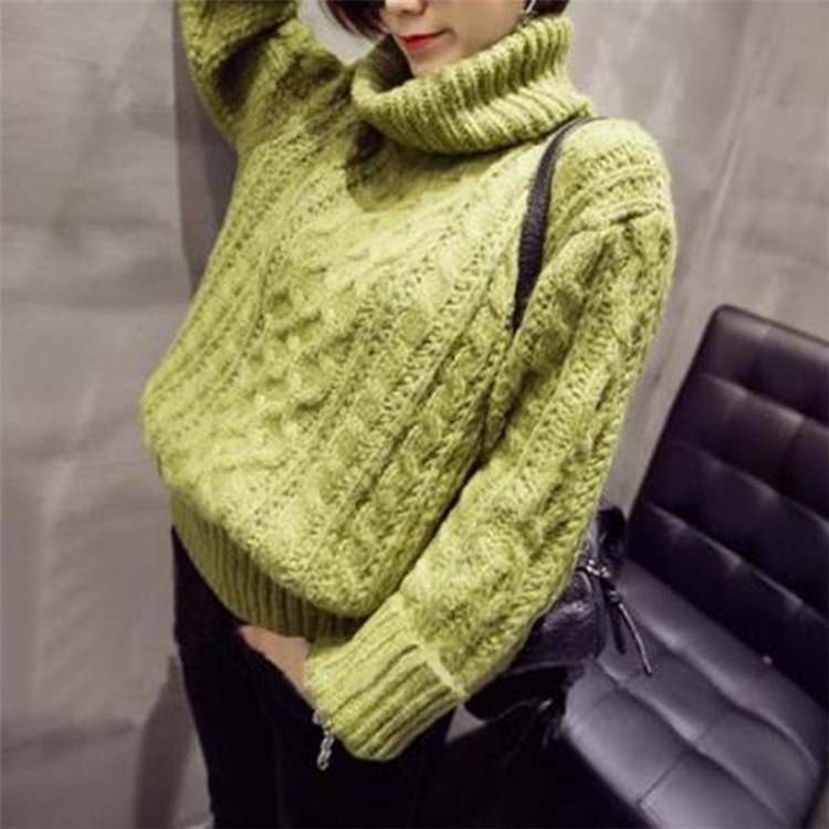 秋冬新款韓版高領(lǐng)麻花毛衣女純色加厚保暖打底衫女式針織衫代付 /