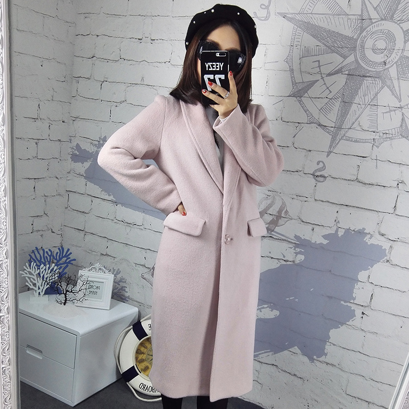 修身顯瘦長袖翻領(lǐng)單排扣長款羊絨大衣 韓版秋冬新款呢子大衣女款 /