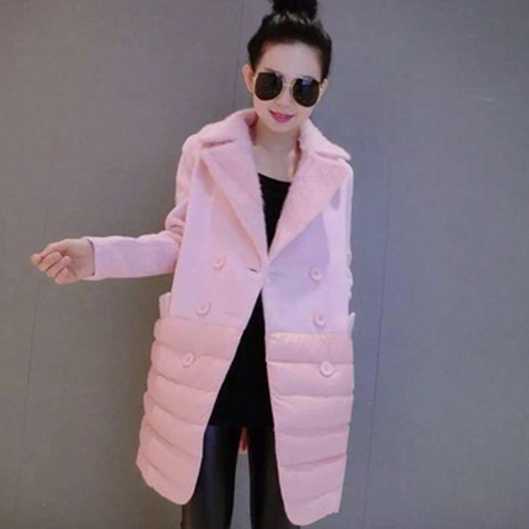 2015冬裝新款韓版女裝寬松顯瘦中長款加厚毛呢拼接棉衣潮牌 /