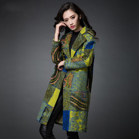 毛呢外套女中長(zhǎng)款潮 花詩(shī)錦寬松繭型廓形時(shí)尚呢子妮子大衣冬2015 /