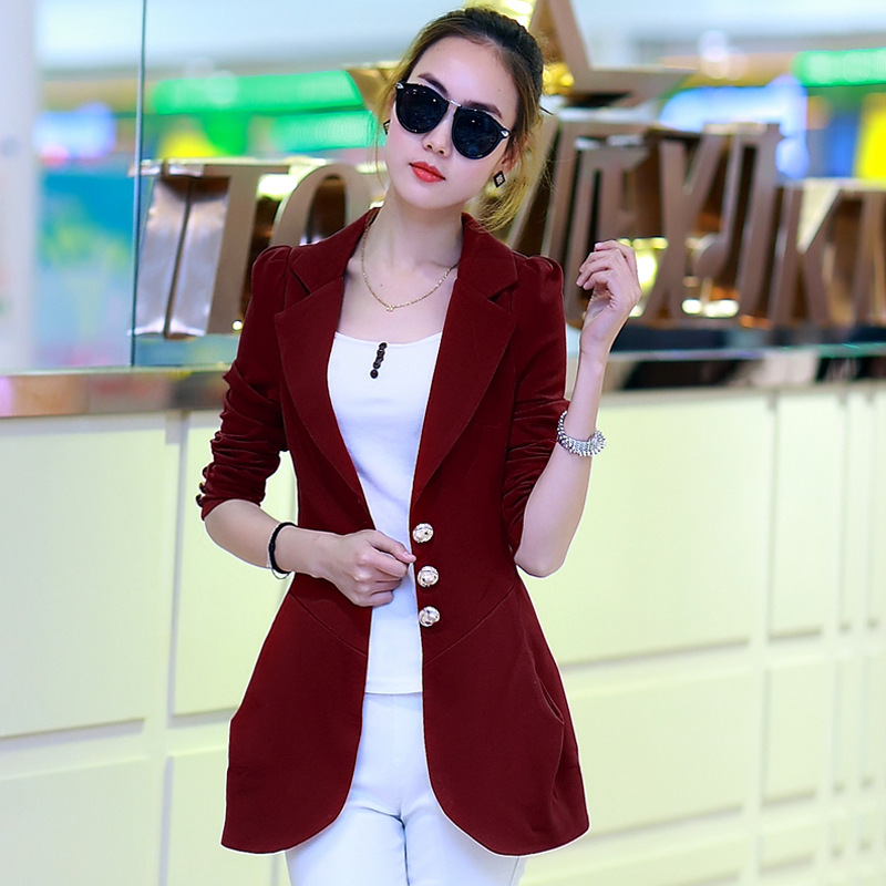 2015新品秋款西裝女歐美修身長袖中長款上衣外套品牌女裝代理加盟 /