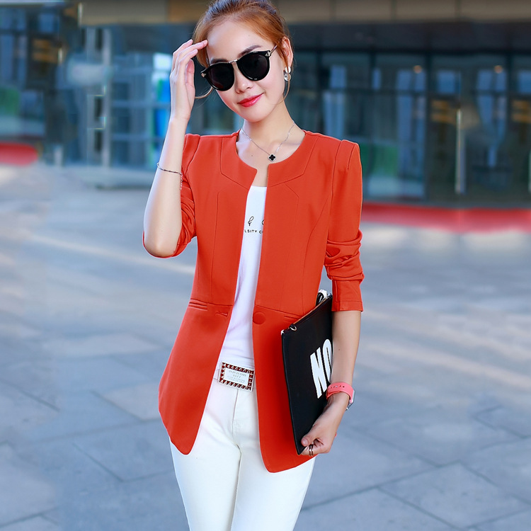 2015新款秋季女裝外套 韓版圓領(lǐng)一??壑虚L款小西裝品牌代理加盟 /