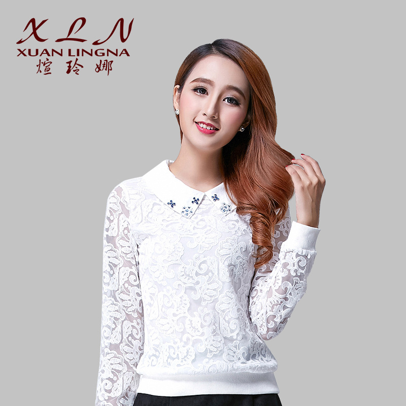 2015新款蕾絲上衣手工釘珠蕾絲打底衫雪紡衫長袖蕾絲上衣 /