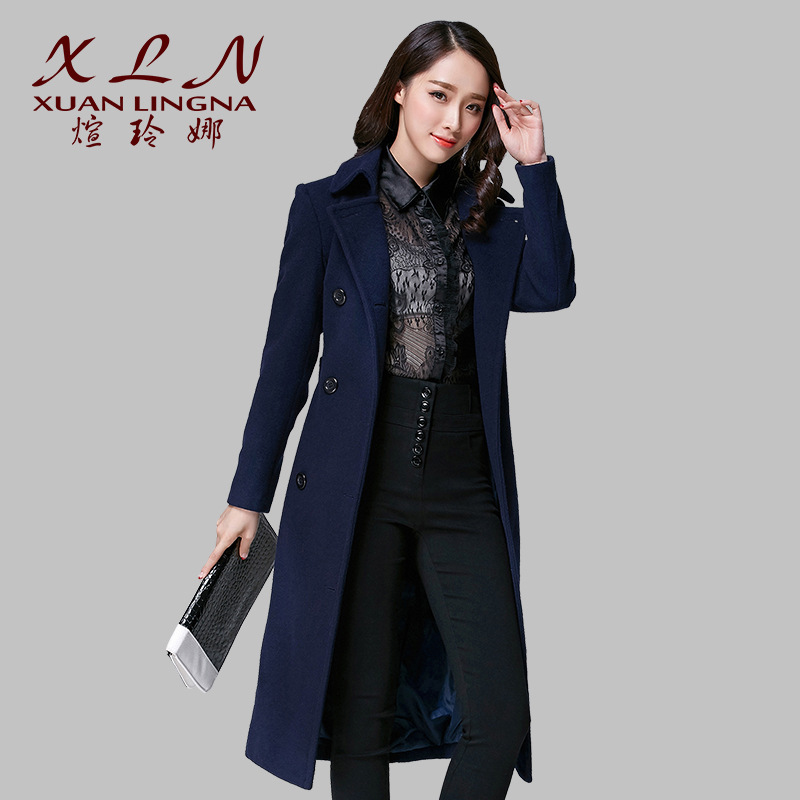 雙排扣羊毛呢子長款大衣歐美直筒毛呢外套(煊玲娜15年冬裝新款) /