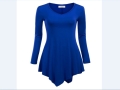 外貿(mào)熱賣2015新款不規(guī)則下擺心開型領(lǐng)口中長款長袖T恤 /