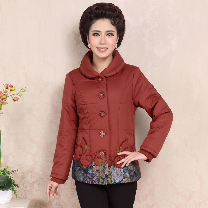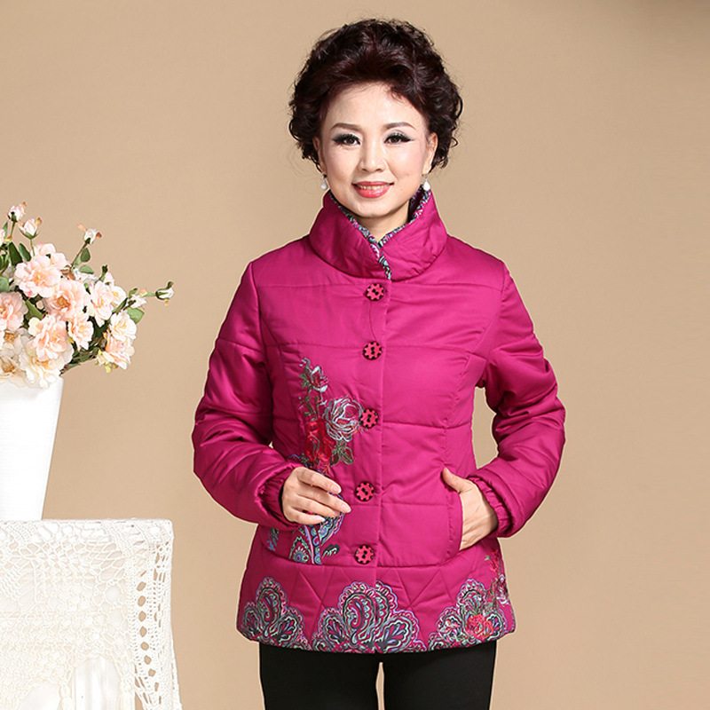 2015新款媽媽裝棉衣冬裝外套老人棉襖中老年女裝大碼繡花棉服批發(fā) /