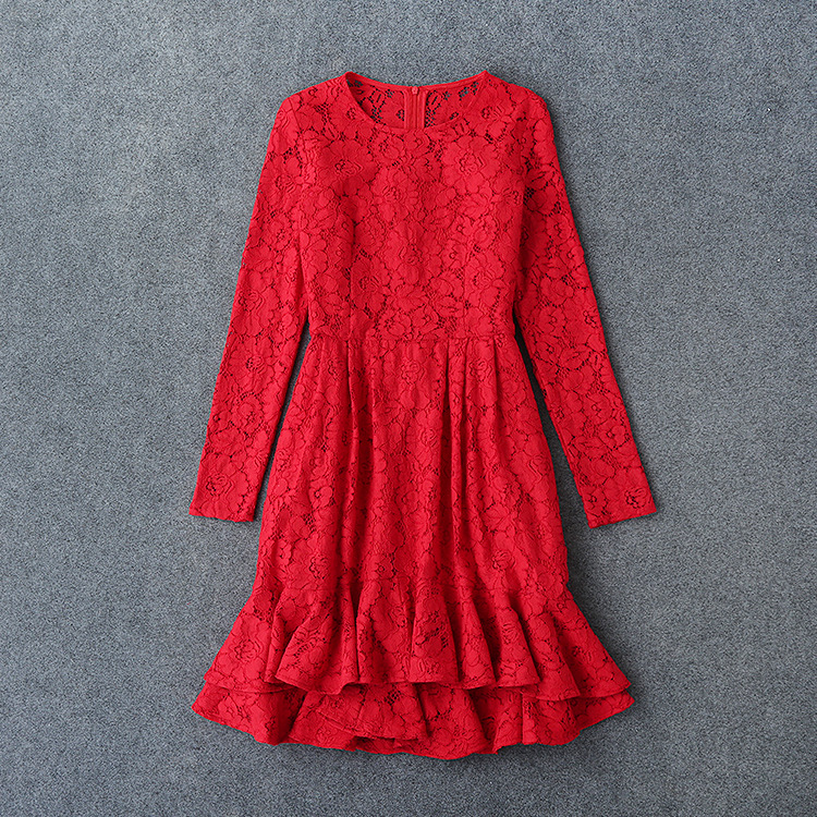 新款明星 baby楊穎同款紅色鏤空蕾絲連衣裙女士短裙 工廠直銷 /