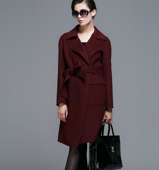 歐美大牌雙面羊毛大衣絨面女2015秋冬新款系帶大碼中長(zhǎng)款毛呢外套 /