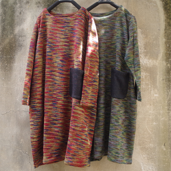 例-外 素-然 左岸風格 原創(chuàng)復古秋冬多彩毛呢連衣裙 /
