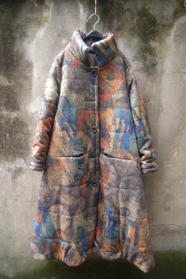 例-外 素然風格 原創(chuàng)磨毛復古雕刻花立領(lǐng)棉外套長袍子 /
