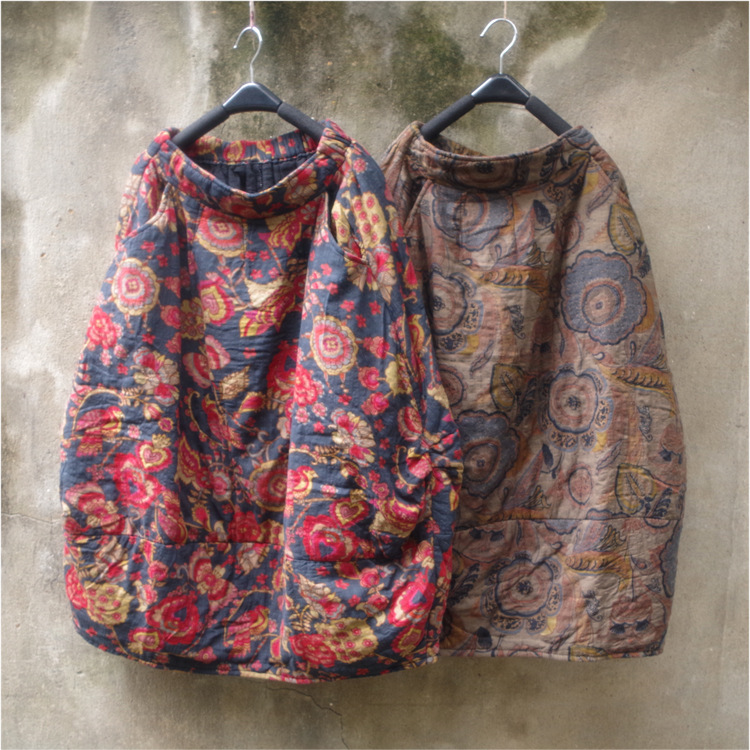 原創(chuàng)設計 純棉民族碎花斜襟 秋冬棉寬松大碼馬甲背心 例-外左岸風 /