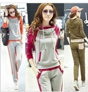2016春秋裝新款女裝三件套連帽休閑衛(wèi)衣套裝運(yùn)動服 /