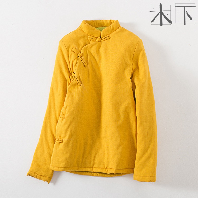 棉麻文藝復(fù)古短外套 加厚斜襟盤扣民族原創(chuàng)棉衣棉服 加厚唐裝棉襖 /