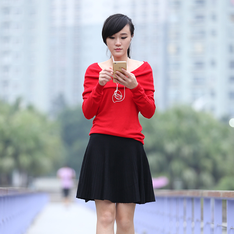秋冬新款女裝韓版大翻領(lǐng)披肩毛線衫 套頭中長(zhǎng)款打底衫 羊絨純色 /