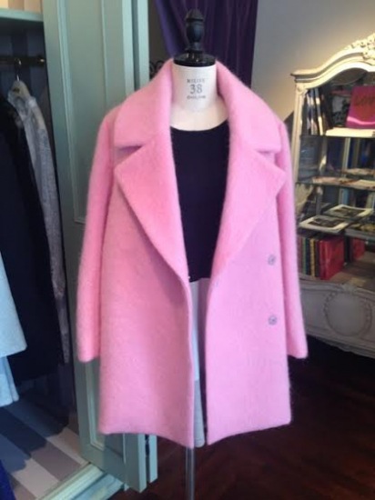 女裝冬vivi同款大衣S家甜美翻領(lǐng)中長簡約羊絨粉紅色毛呢外套包郵 /