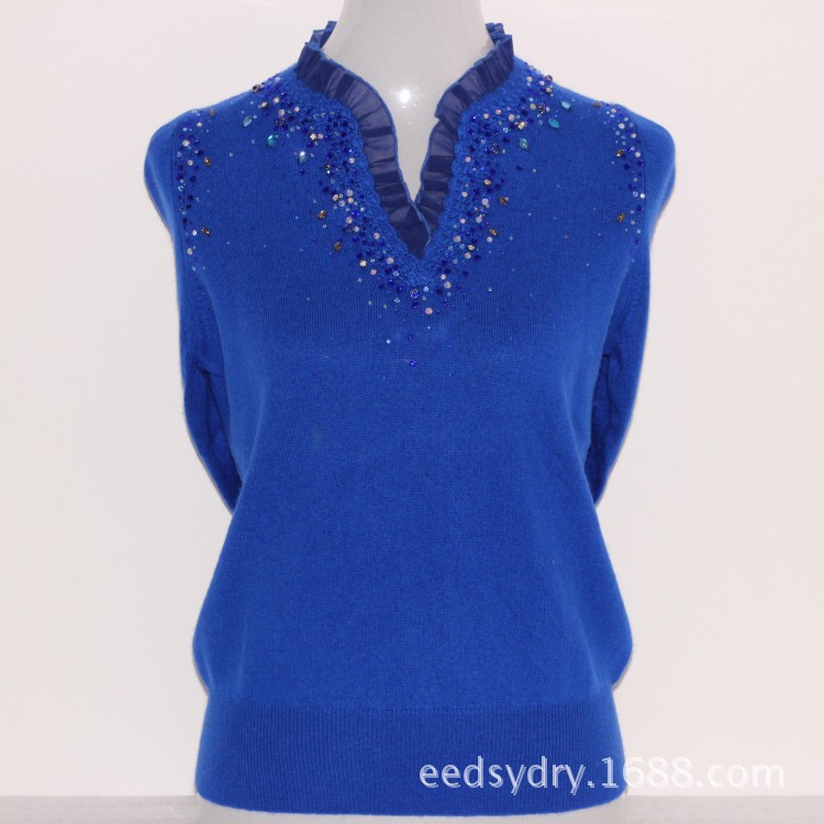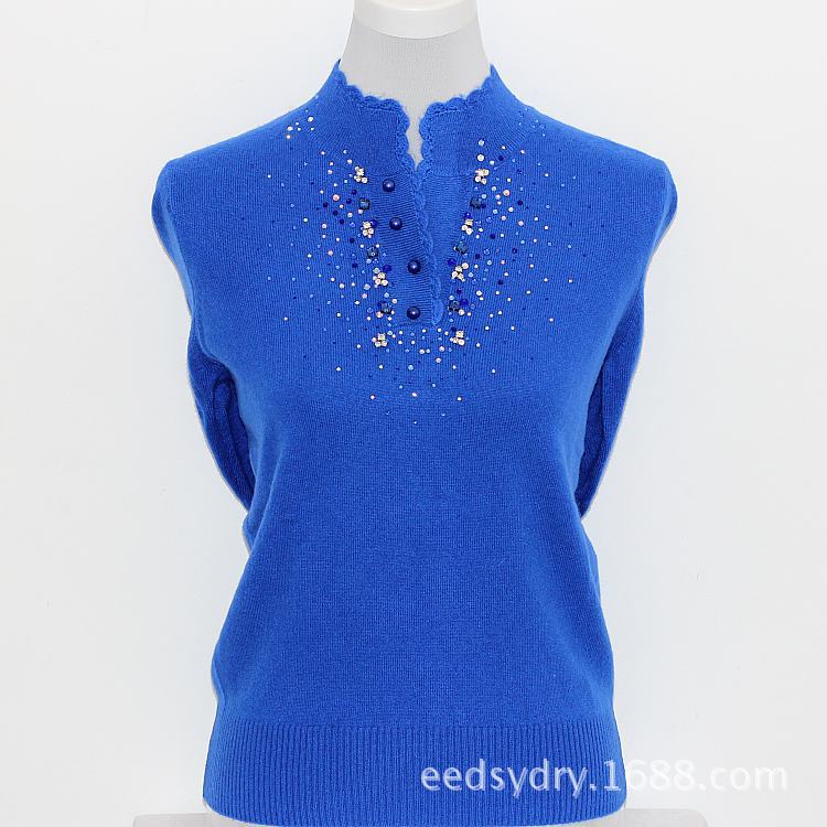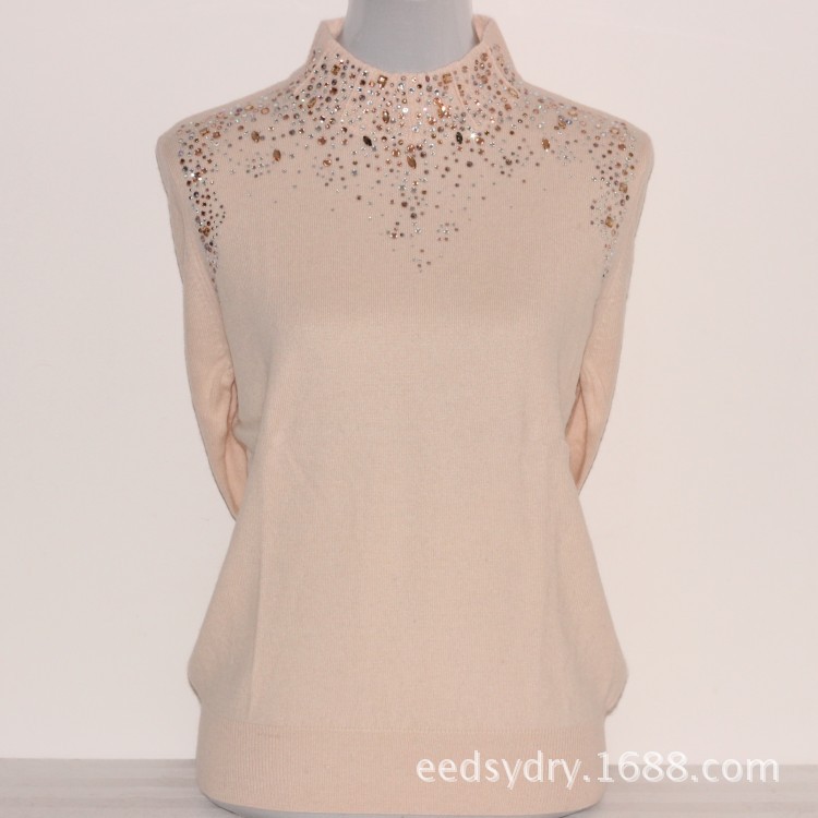 2015新款女式羊絨衫純色韓版毛衣套頭燙鉆立領打底衫廠家批發(fā) /