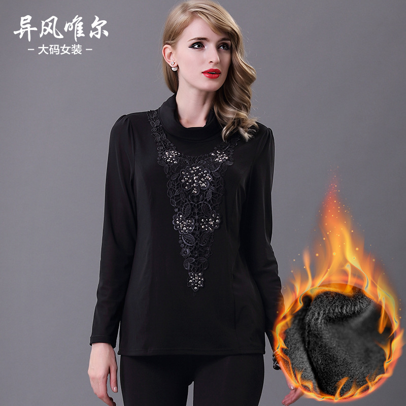 2015大碼女裝胖mm冬裝新品高端寬松顯瘦加厚加絨200斤長(zhǎng)袖打底衫 /