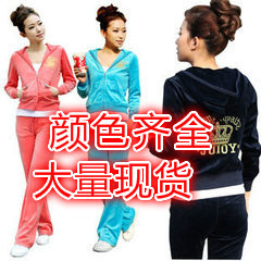 優(yōu)質(zhì)好質(zhì)量新款天鵝絨皇冠圖案運(yùn)動修身休閑套裝衛(wèi)衣兩件套 /