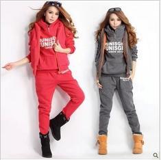 秋冬新品 女裝休閑套裝 韓版連帽抓絨加厚 衛(wèi)衣三件套 /
