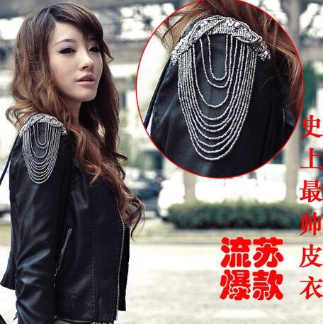 第一皮衣秋裝新款外套歐美機(jī)車流蘇短款修身PU小皮衣女士夾克 /