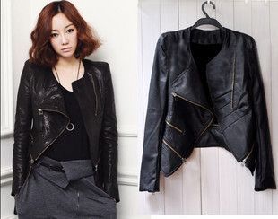 新款韓版女裝短款修身機(jī)車服PU皮衣皮夾克小外套 /