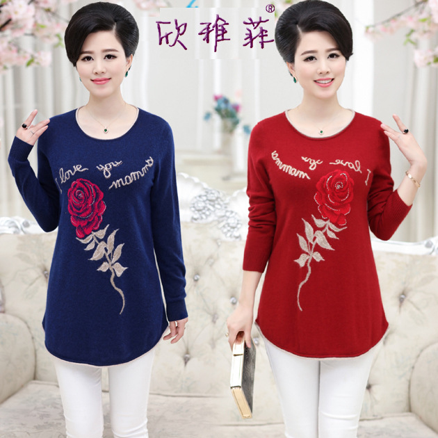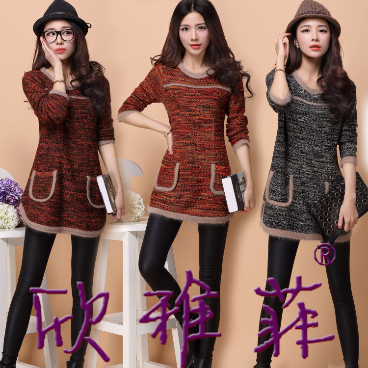 欣雅菲2015秋冬新款女裝 玫瑰花針織衫打底衫毛衣 中長款貂絨毛衣 /