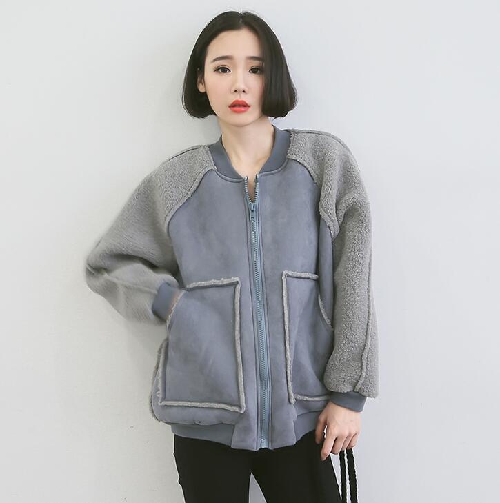 歐美風(fēng)圓領(lǐng)長(zhǎng)袖雙口袋內(nèi)加棉衛(wèi)衣外套女裝秋冬新款 /
