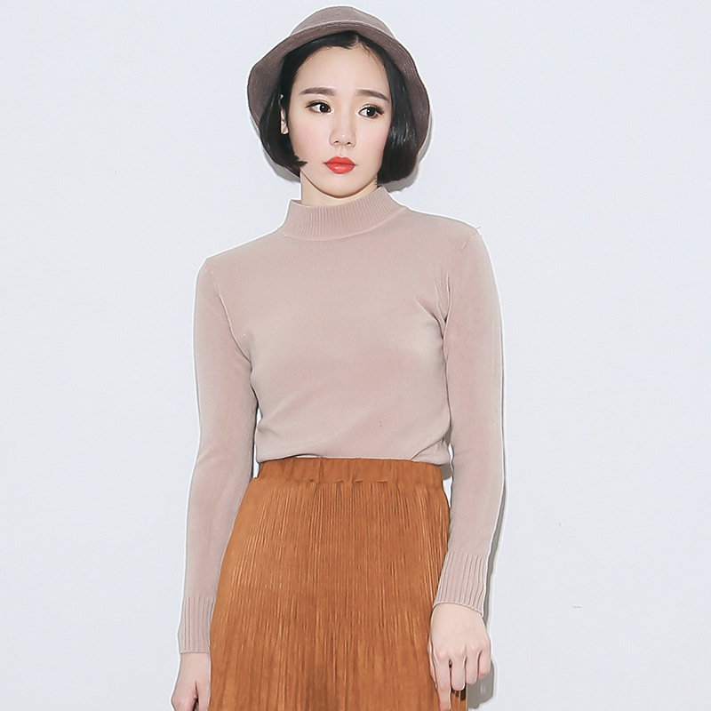 韓版立領(lǐng)長(zhǎng)袖純色針織時(shí)尚套頭毛衣女裝秋冬2015新款 /