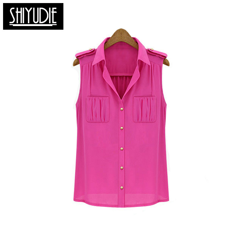 shiyudie夏裝新款寬松顯瘦純色女式大碼翻領無袖雪紡衫一件代發(fā) /
