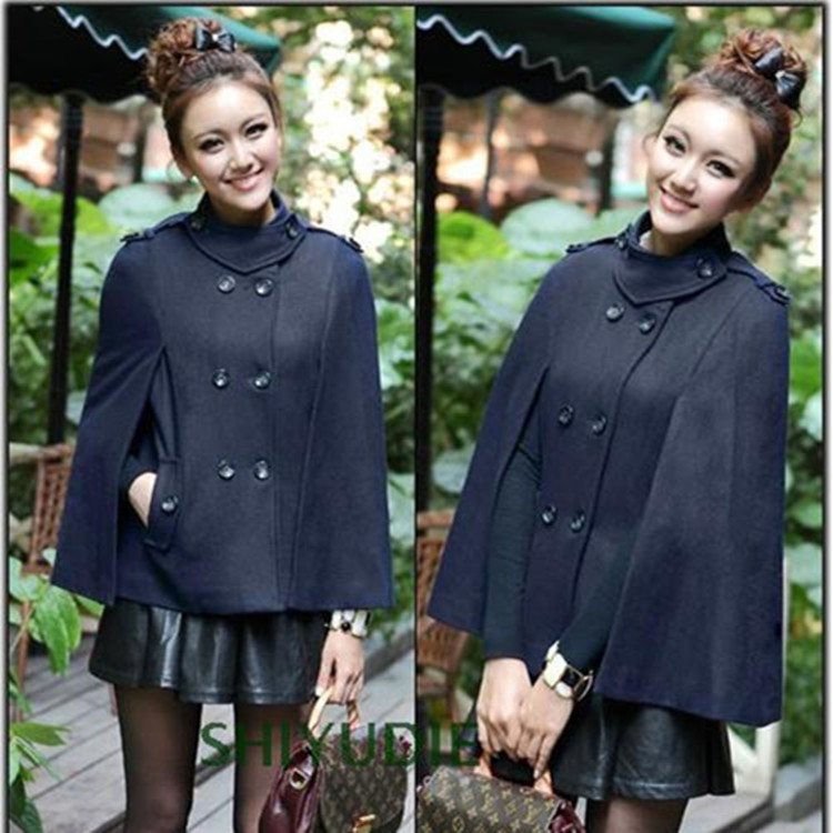 新款韓版軍裝風范斗篷式雙排扣呢大衣妮子外套披肩斗篷外套女批發(fā) /