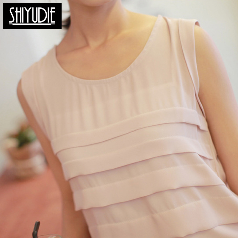 shiyudie新款夏裝韓版時尚圓領可愛純色無袖雪紡衫一件代發(fā) /