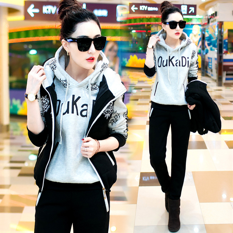 2015冬裝新款大碼女裝 韓版印花衛(wèi)衣三件套加厚加絨運(yùn)動(dòng)休閑套裝 /