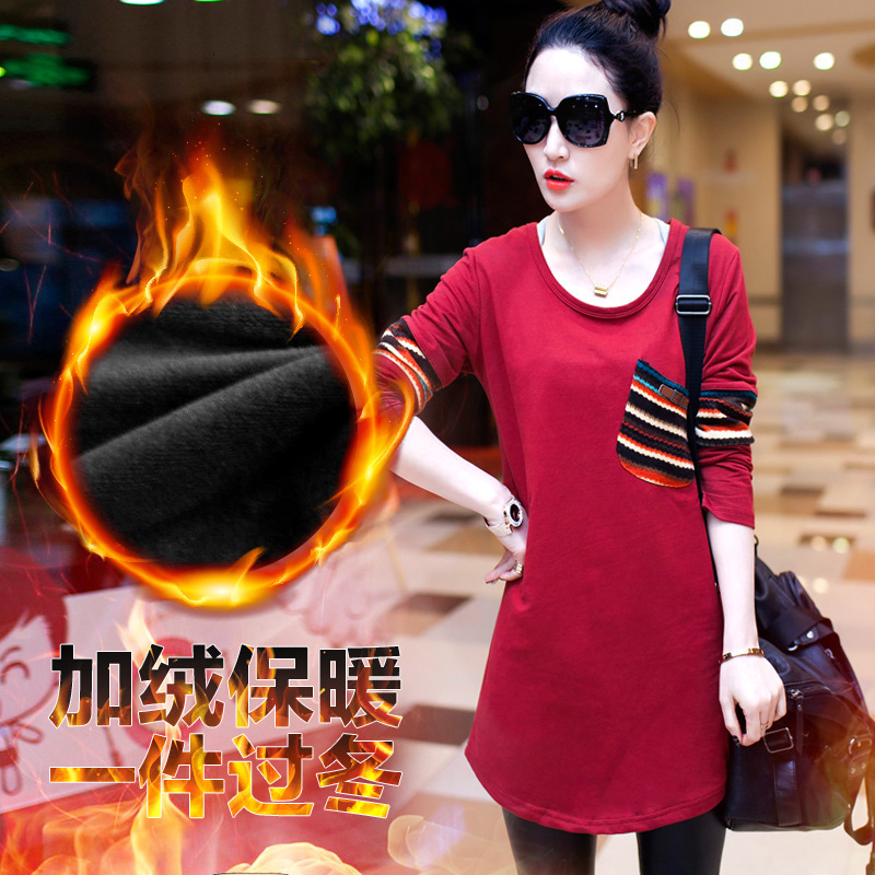 2015秋冬裝新款大碼女裝韓版修身顯瘦長袖t恤加絨加厚保暖打底衫 /