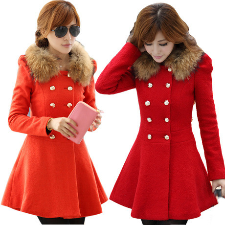 2015秋冬新品大碼女裝 韓版中長款大毛領(lǐng)修身中長款呢子大衣外套 /